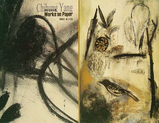 環視赤粒的展場,楊識宏半具象作品是友善的,它留有許多線索讓觀者去理解畫家的意圖,花、鳥、樹枝、青蛙、大象、種子………等,和大自然有關的元素,加上大地色系土色、褐色、米色的大量出現,附和笛卡爾的說法:「我們通過直覺和演繹兩種活動達到對事物的理解。我所謂的直覺不是指感覺之動搖不定,也非感覺之胡亂堆砌所導致的錯誤判斷,而是毫無遮掩的心靈啟發我們的,這種給予非常的清楚明白。」觀看楊識宏的作品直覺的啟發依循著具體的線索---形狀與顏色隱隱的指向物種本質/能與土地的原始聯繫,形狀並不用單一畫材來表現,感覺也不只是單一的詮釋,炭精筆的粗獷速寫、鉛筆淡彩的輕薄優雅、以及壓克力顏料堆疊的堅實結構,畫家善用大塊面的明暗反差,來對比、區別、襯托視覺的強度,讓畫材來純熟演練質感與層次的豐富性,呈現原始與神秘的面向。